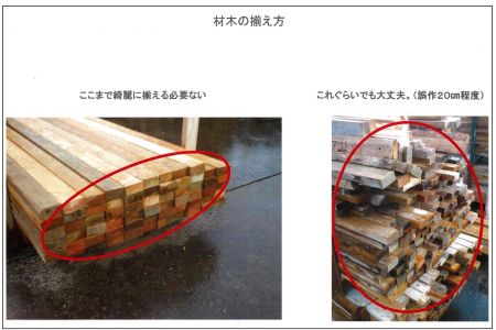 また、木材整理作業等では、必要以上に端を揃える時間が減少して、業務の効率化が図られた。