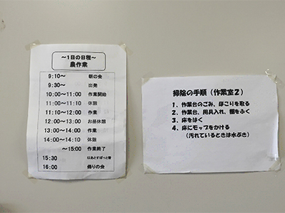 農作業のスケジュール。各自確認できるよう壁に貼られている。